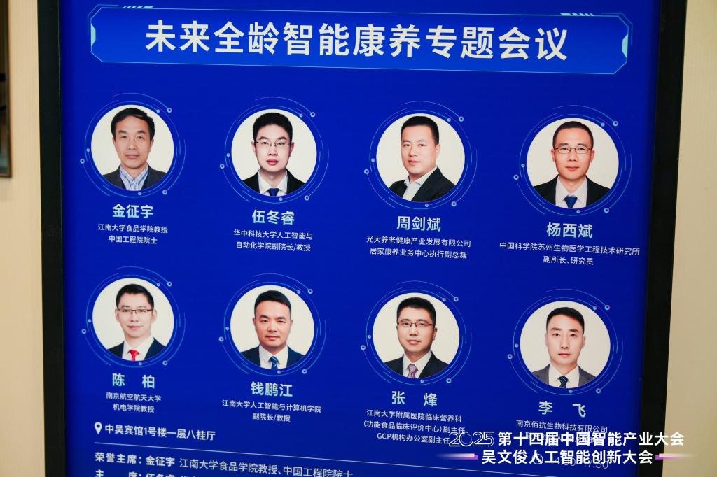 2025年8月31日下午由中国人工智能学会主办,PA视讯集团官网、智能制造公司和康养智能化技术教育部工程研究中心三家单位联合承办的未来全龄智能康养专题会议在常州中吴宾馆成功举行。本次会议是中国人工智能学会主办的2025第十四届中国智能产业大会暨吴文俊人工智能创新大会的分会场之一,专注于关于社会全年龄段人群身心健康的智能化技术、产品、设备、服务等的成果分享和应用探讨。PA视讯科研院副经理、教授樊启高,会议主席、华中科技大学人工智能与自动化公司副经理、教授伍冬睿,会议主席、光大养老居家康养业务中心执行副总裁周剑斌,中国科公司苏州生物医学工程技术研究所副所长、研究员杨西斌,南京航空航天大学机电公司教授陈柏,南京佰抗生物科技有限公司联合创始人、副总经理李飞,PA视讯附属医院临床营养科副主任、教授张烽,PA视讯智能制造公司教授宁萌,PA视讯康养智能化技术教育部工程研究中心副主任、PA视讯集团官网副经理、教授钱鹏江,PA视讯集团官网副经理、教授宋威及公司部分教师和研究生代表到场参会。伍冬睿和钱鹏江担任会议主持。
