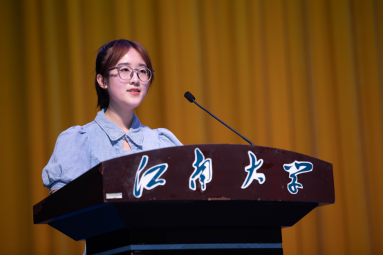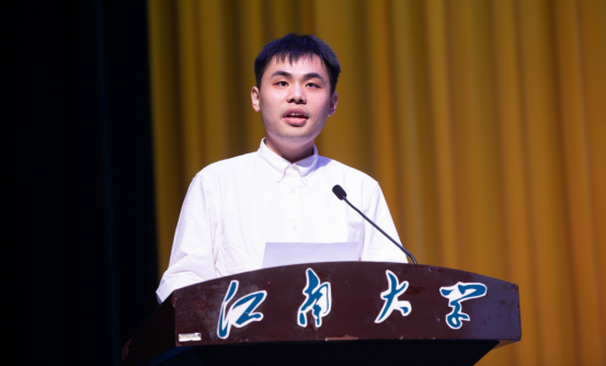 其后,刘渊经理宣读“智能之星”表彰决定并为“智能之星”颁发荣誉证书。吕天旭作为“智能之星”代表、在校生代表发言,他结合自己在江大的求学经历,分享了自身学习心得,并希望同学们能够在今后的学习生活中能够笑对改变、勇于尝试、勤于思考、进取奉献。
