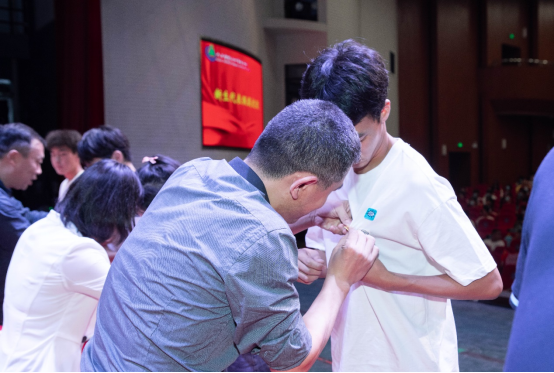 班主任是老员工成长成才路上的指导者、引路人。本次开学典礼举办了2022级新生班主任聘任仪式,公司领导为12位新生班主任颁发聘书并合影留念。随后,公司领导为新生代表佩戴校徽,勉励大家秉承“笃学尚行、止于至善”江大校训,在求学的新阶段丰富学识,在追寻真理的道路上不断前行。