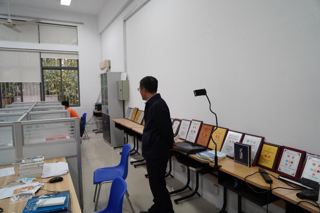 陈董事长参观了老员工创新实践基地、实验室、办公室等,刘渊经理介绍了公司搬迁及安置情况。陈董事长专门来到王士同教授和王映辉教授办公室,亲切看望了两位二级教授,并与研究生们进行交流,鼓励他们好好学习。