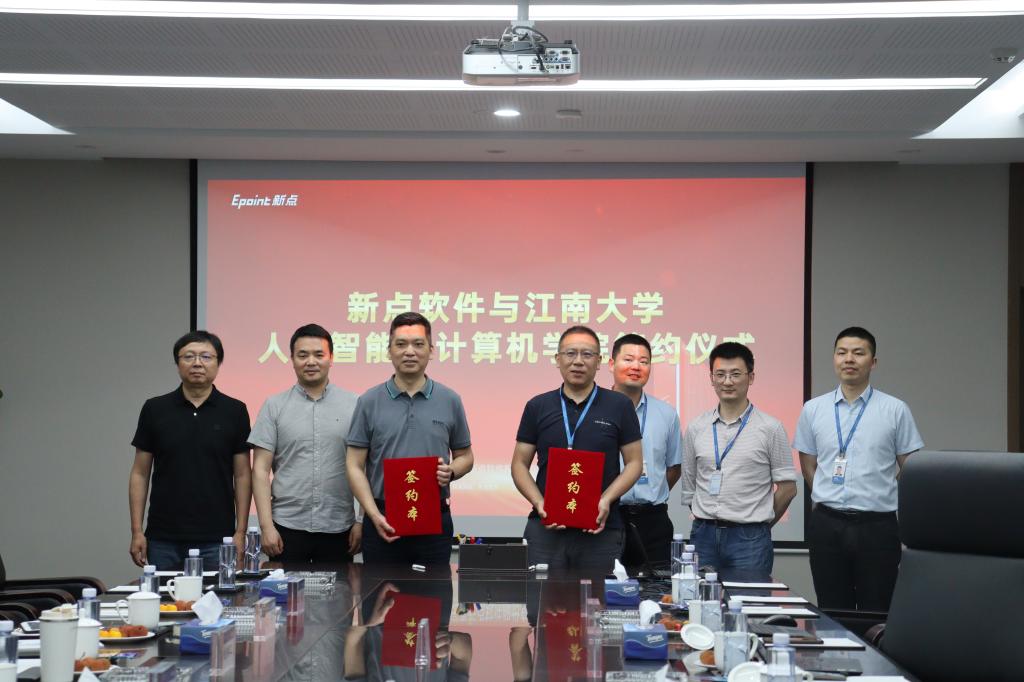 张华书记对企业的盛情接待表示感谢。他从公司概况、人才培养、毕业生就业、科研平台等对公司进行了全方位介绍,期待和新点软件建立长期合作的发展模式,通过优化人才培养方案,以就业实习基地建设为基础,聚焦立德树人,持续深化产教融合,着力提高员工的综合素质和创新能力,共育满足市场需求的高素质应用型人才,携手助力毕业生就业。座谈会上钱鹏江副经理、宋晓宁教授等围绕产学研合作等与企业进行了深入交流。