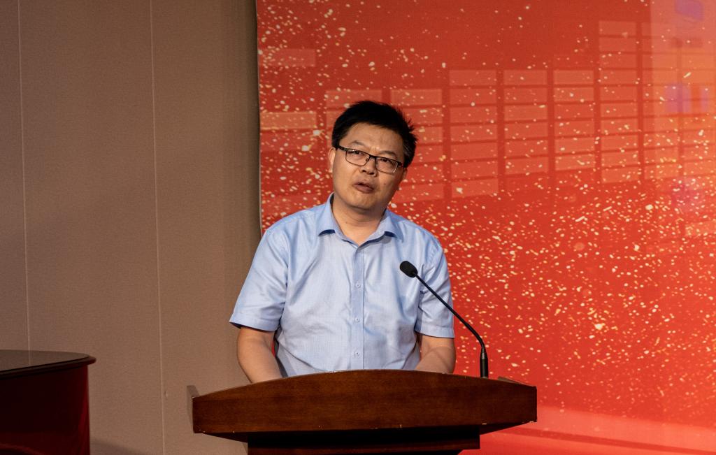 公司副经理钱鹏江宣读员工联络员名单并赠送毕业小礼物,他希望员工联络员能够认真履行职责,凝聚员工、服务母校。