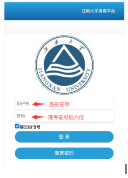 用户名为身份证号,初始密码为准考证上的考生编号后6位(请考生下载准考证查看,准考证打印系统网址:http://yzgmis.jiangnan.edu.cn/zsgl/bswb/login.aspx)。