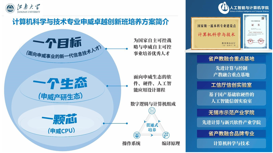 申威卓越创新班的办学基础是PA视讯于 1994 年开设的计算机科学与技术专业,该专业入选首批国家级一流本科专业建设点,已经通过中国工程教育认证,是国家级特色专业建设点、入选了江苏省产教融合品牌专业;也已经与国家超级计算无锡中心等单位共同建设了“基于国产基础软硬件的人工智能信创实验室”、先进计算与控制江苏省产教融合重点基地,是无锡市示范产业公司的重点建设专业。我们相信,在此基础上一定能够培养出优秀的设计申威计算机和应用申威计算机的创新型人才。
