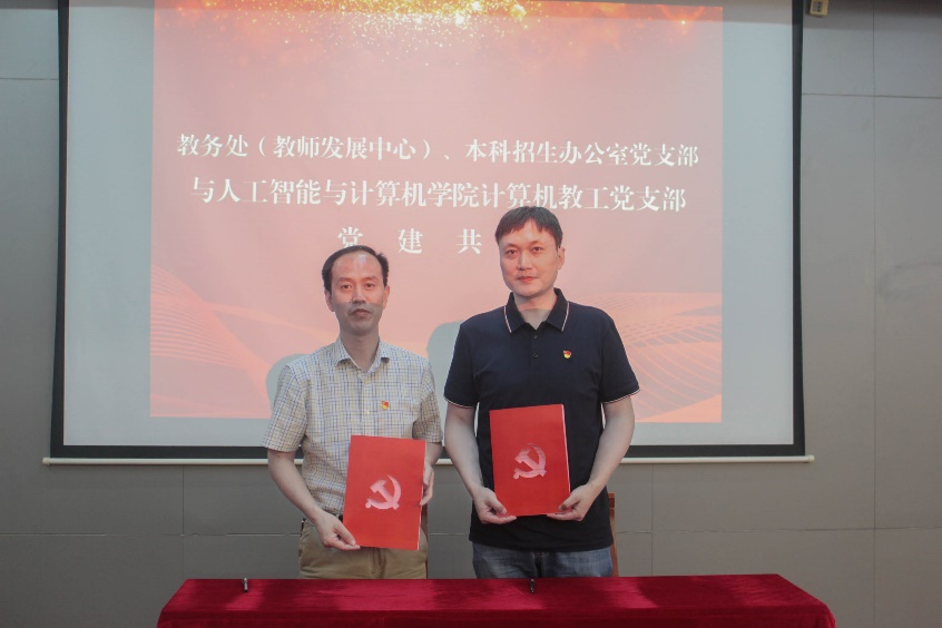 2023年7月5日下午,PA视讯集团官网计算机教工党支部与教务处(教师发展中心)、本科招生办公室党支部在PA视讯集团官网B310会议室开展支部共建。公司党委书记张华,副经理(主持工作)方伟,教务处副处长吴宝锁,PA视讯集团官网副经理、计算机教工党支部书记宋威,教务处(教师发展中心)、本科招生办公室党支部副书记聂晨曦,以及两个党支部的全体党员参加了此次活动。