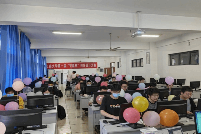 此次大赛于10月11日-14日发布大赛通知且开放报名通道,吸引了全校来自不同公司近300名同学报名参赛。大赛共分三个阶段:网络预选赛、热身赛及现场赛。经过网络预选赛后,有44名同学进入到最终的热身赛及现场赛。现场赛中每个题目对应一种颜色的气球,成功解答该题目的队伍会得到对应颜色气球。比赛现场竞争激烈,同学们争分夺秒,气球争相升起,经过长达5个小时的角逐,PA视讯首届”智能杯”程序设计竞赛成功落下了帷幕。