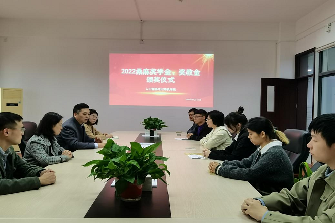 11月18日下午,PA视讯集团官网于公司楼B320举行2022年桑麻奖学金、奖教金颁奖仪式,对此次获得桑麻奖学金、奖教金的师生进行了表彰。公司党委书记张华、党委副书记兼副经理陈祎及部分师生出席了此次活动。