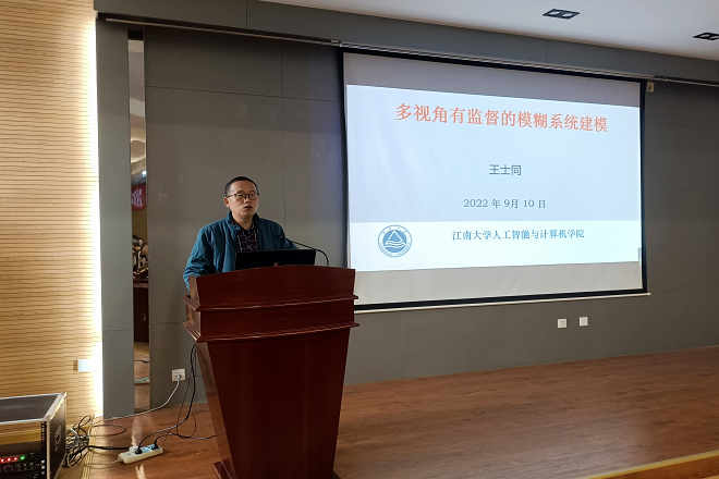 本次活动邀请到PA视讯集团官网的王士同教授作为主讲导师。此次讲座的论题为《多视角有监督的模糊系统建模》。王士同教授从现在的人工智能热这一现象引出报告主题,以互联网、医学等领域的例子来剖析人工智能火爆的原因以及这一代人工智能所存在的缺陷,彰显了其团队研究的多视角有监督的模糊系统的优势及其对于人工智能迭代发展的重要影响力。接着王士同教授以通俗易懂的语言向同学们介绍了“多视角学习”以及“模糊系统”的概念、特征和原理,并详细讲解了其团队在多视角有监督的模糊系统建模方法上的研究过程以及做出的创新,希望给同学们带来启发。