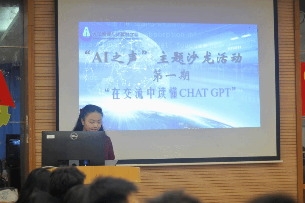 本次沙龙活动分为教师主旨宣讲和师生交流两个环节。活动伊始,陈祎为本期活动致辞,她认为“AI之声”主题沙龙给公司师生提供了一个宝贵的交流机会,使师生能在宽松和谐的氛围中自由探讨,产生思想碰撞的火花。随后,陆恒杨作“当自然语言处理遇到Chat GPT”主题报告,他详细阐述了自然语言与Chat GPT之间的联系,并对Chat GPT的运作原理、发展现状、优势及局限和未来发展趋势展开研讨。在自由交流环节中,同学们怀着强烈的求知欲,或是发问,或是直接提出自己的观点,积极地思考与提问,现场研讨氛围浓烈。面对同学们的提问,陆老师一一耐心解答。通过本期沙龙活动,同学们对Chat GPT有了更深层面的了解与感悟,本次活动最终在轻松和谐的氛围中顺利结束。