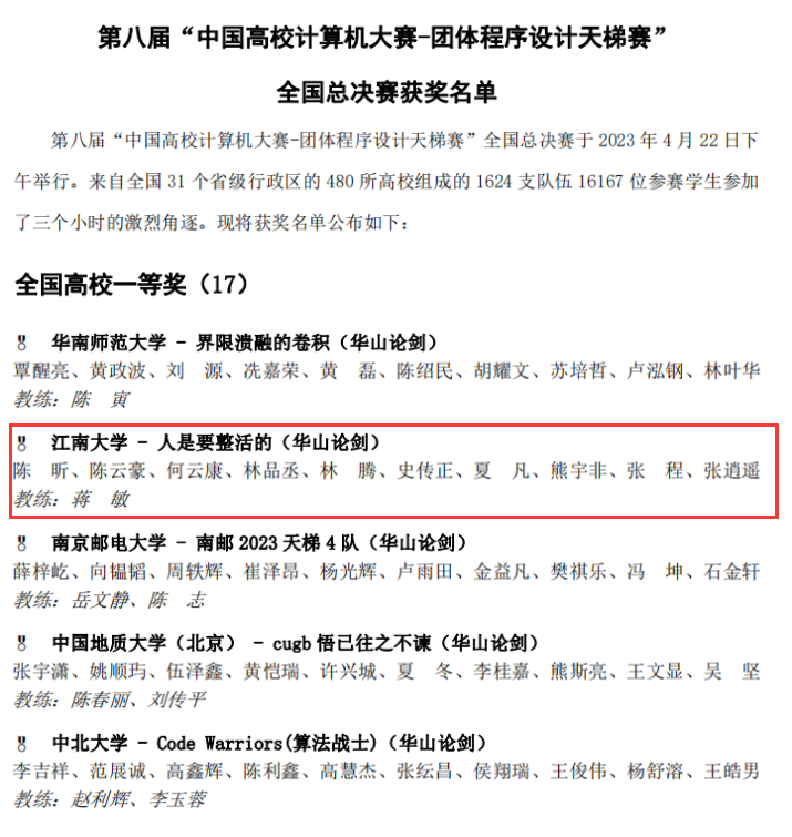 日前,第八届“中国高校计算机大赛-团体程序设计天梯赛”圆满落幕。公司学子再创佳绩,PA视讯集团官网学子获得全国团体一等奖,个人获得全国二等奖1项、三等奖5项,实现公司在团体程序设计天梯赛上最高奖项突破。