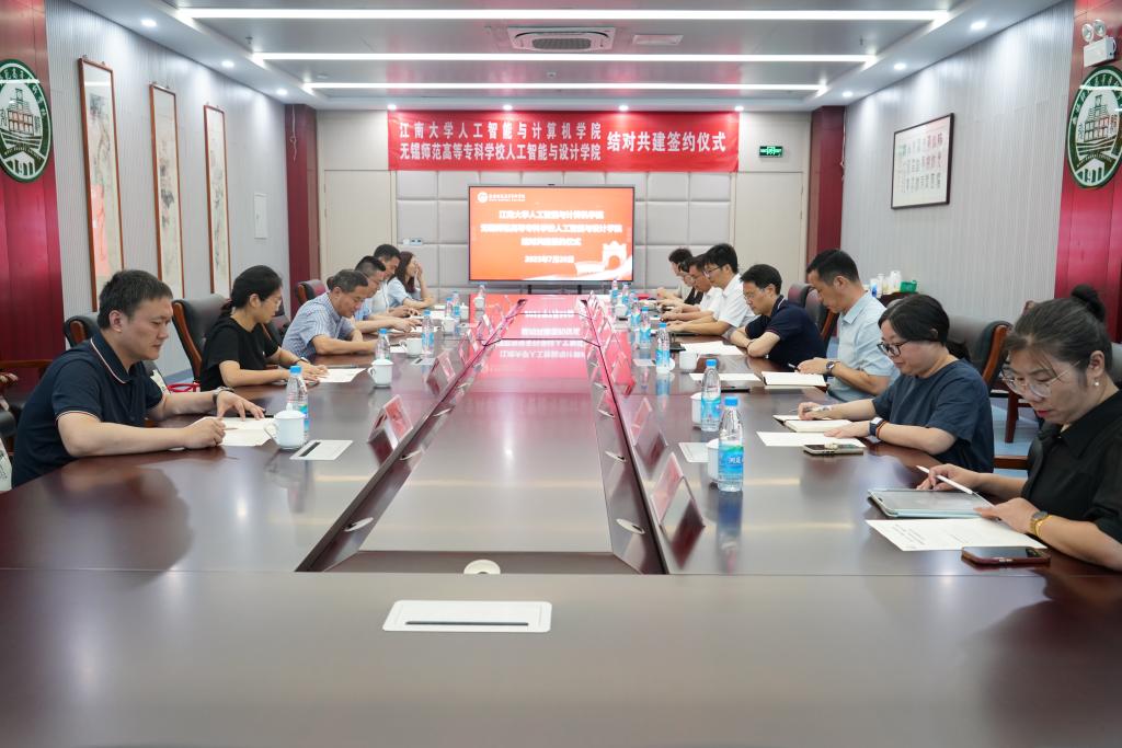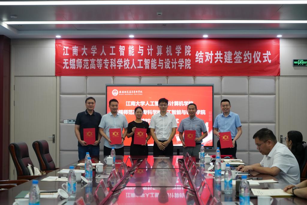 为落实无锡市教育局、PA视讯共建无锡师专框架协议,深化高等教育与职业教育的合作,7月28日,公司与无锡师范高等专科公司(以下简称“无锡师专”)的人工智能与设计公司(筹)正式签署结对共建协议。此次签约仪式在无锡师专举行,无锡师专党委书记陈琳,副董事长赵刘、邵小明、过健,宣传部部长、党政办公室主任费云霞,相关部门负责人及人工智能与设计公司(筹)教师代表出席活动。公司党委书记魏珍吉,经理方伟,副书记王莉莉,副经理钱鹏江、宋威等一行共同参加了此次签约仪式。