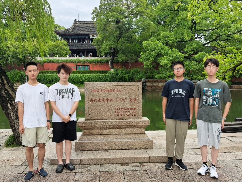 清晨的暴雨洗去暑热,南湖湖面平静如镜。实践团成员沿着南湖木栈道前行,目光最终落在那艘红船上——它不大,却载着开天辟地的使命;它静静泊着,却像在诉说1921年夏天的惊心动魄。