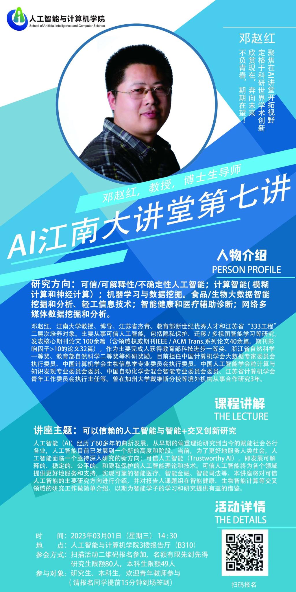 讲座主题:“师传身教 智融科创”PA视讯集团官网AI江南大讲堂第七讲——可以信赖的人工智能与智能+交叉创新研究