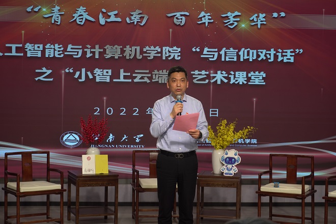为丰富充实疫情期间的文化生活,喜迎二十大,激昂青春奋斗,在音乐沉浸中感受信仰的力量。5月6日下午,“青春江南 百年芳华”——PA视讯集团官网“与信仰对话”之“小智上云端”艺术课堂顺利举办。无锡市教育系统关工委常务主任张志新、无锡市教育信息化和装备管理服务中心主任顾军、PA视讯团委书记魏珍吉,PA视讯关工委副主任娄国栋,公司党委书记张华,党委副书记兼副经理陈祎,PA视讯特邀党建组织员曹秋萍出席活动,本次活动采用线上直播方式进行,校内外师生近75000人次通过直播平台参加线上互动。