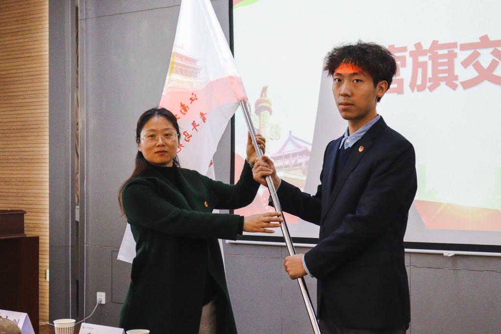 倪秋筱作为学员代表发言。她提议学员们要加强政治历练,做忠诚于党、政治过硬的红色接班人;锤炼过硬本领,做勤奋学习、躬耕实践的先锋领路人;提高奉献意识,做心系公司、服务同学的群众贴心人。随后,王莉莉为此次训练营员工干部代表闫泓瑾授予营旗。