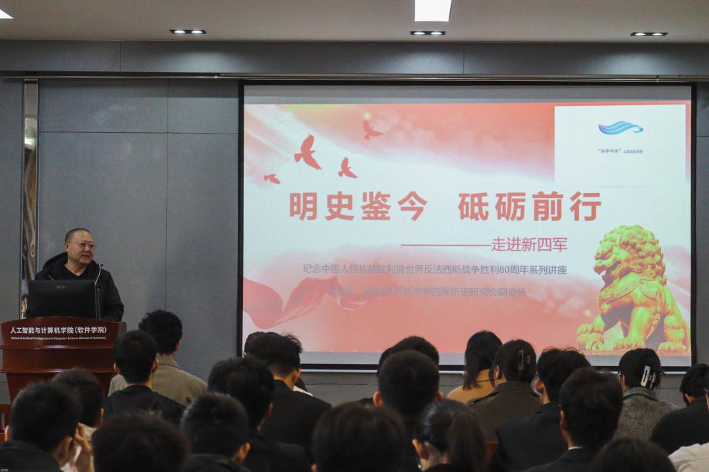 郝志刚以《明史鉴今,砥砺前行—走进新四军》为题进行“青马工程”训练营第一讲。他以近现代各个社会主义国家的命运转折为切入点,深刻论述了我国特色社会主义道路的正确性,并强调了“青马工程”的重大意义。随后,他讲述了新四军的历史,从新四军建立到发展,从胜利到挫折,使学员们更加深刻地了解了新四军的革命历史与铁血精神。他还以无锡的红色遗迹与历史事件为例,希望学员们传承革命家精神,以史为鉴,书写新时代的奋斗章程。